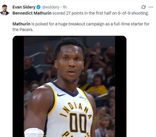 半场9中9+23分钟12中11:马瑟林31分引热议美记称先发是爆发关键