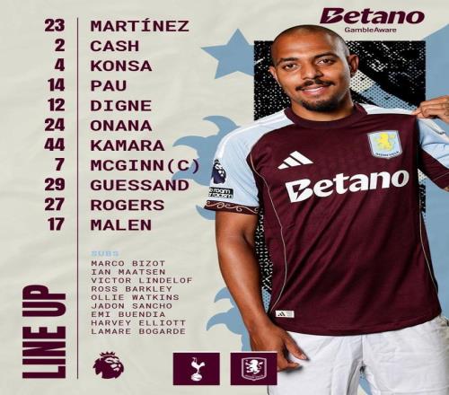 热刺vs维拉:帕利尼亚、哈维西蒙斯首发,库杜斯、特尔出战