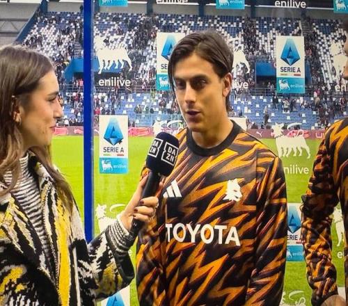 雷速体育10月27报道 北京时间10月26日22:00,意甲第8轮,罗马客场1-0战胜萨索洛,本场比赛结束之后,为罗马打进制胜球的迪巴拉获得全场最佳球员并接受了DAZN的采访。