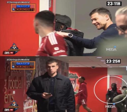 据西班牙六台拍摄视频显示,阿隆索在皇马和利物浦的比赛赛后与弗林蓬进行了14分钟的秘密会谈。