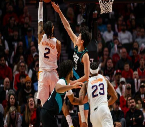 中段杨瀚森上篮打进,随后杨瀚森助攻西索科轰进三分球,比赛最后两分钟,杨瀚森接到球后强起被帽,随后抢回篮板完成2+1!最终开拓者110-127不敌太阳,遭遇三连败。但比较有趣的是,开拓者替补在场全部赢分,首发平均输21分!