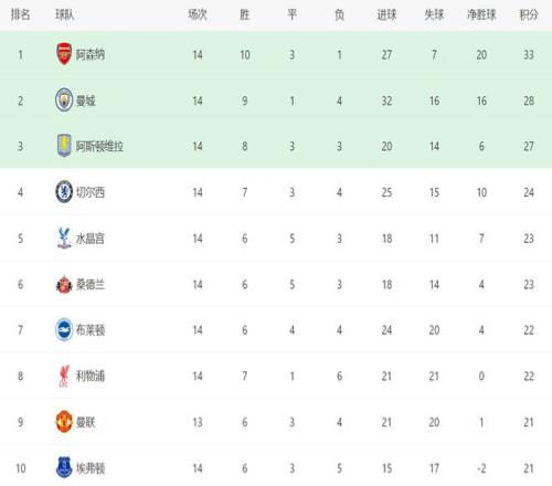 随着阿森纳20,利物浦11,切尔西13爆冷,英超最新积分榜出炉